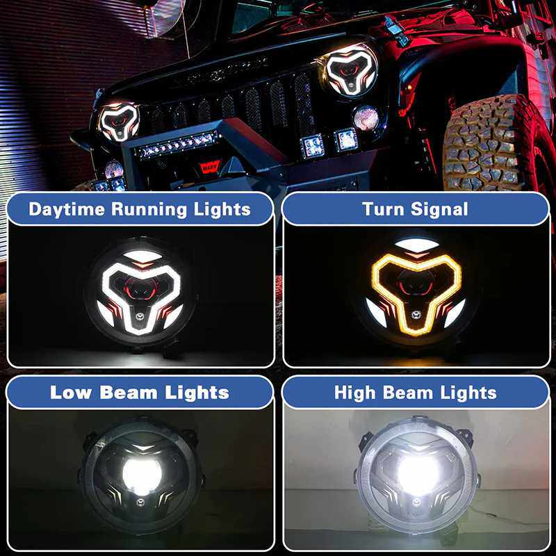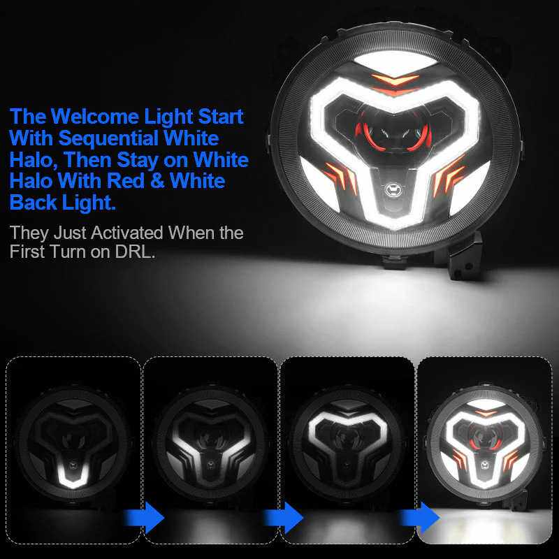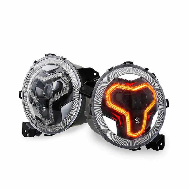 适用于2018+JL JT牧马人迎宾带日行灯 转向灯 头灯 9寸LED大灯
