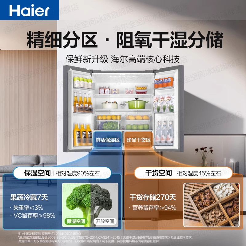 以旧换新补贴海尔539L十字双开四门一级能效无霜电冰箱家用大容量