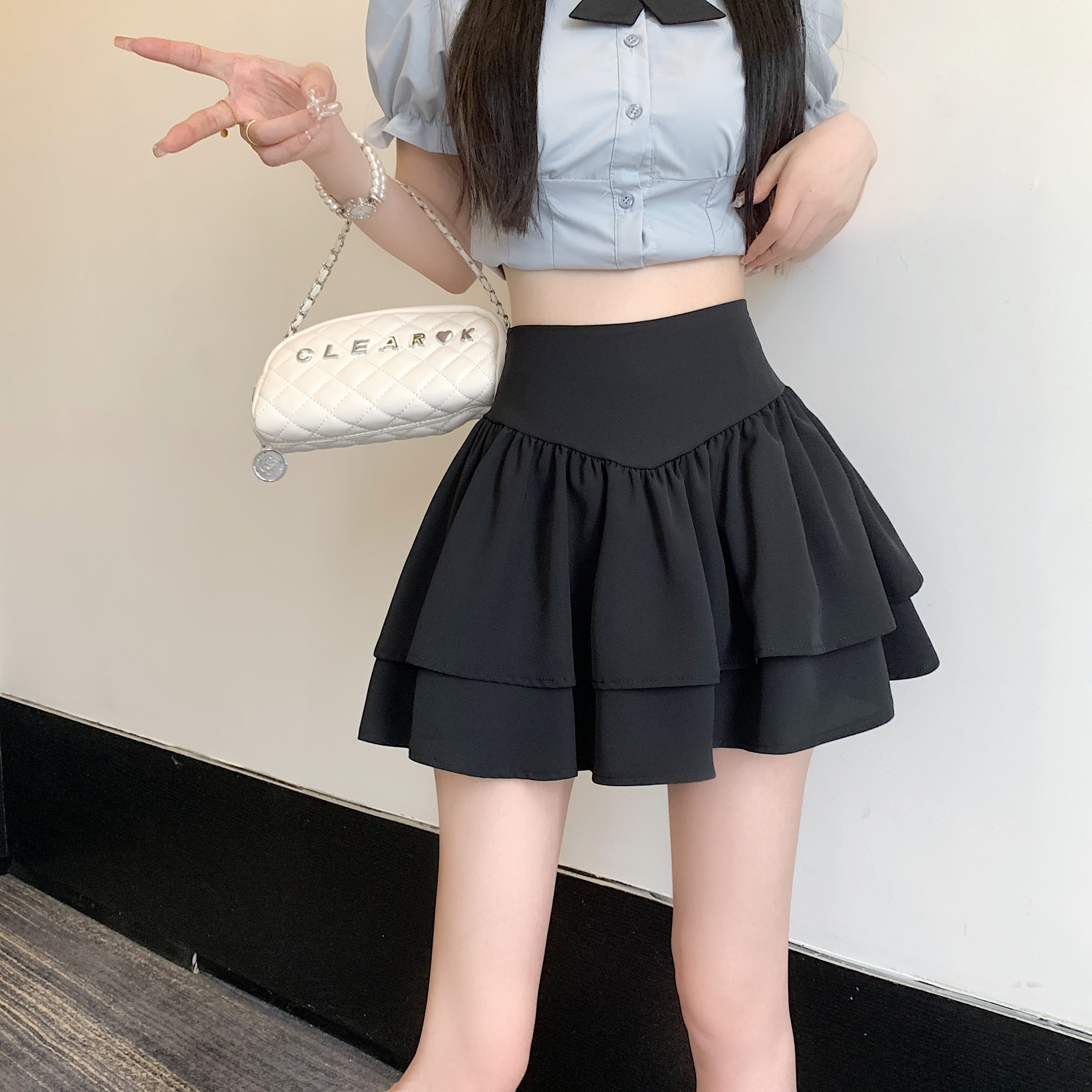 夏季法式高级感蓬蓬半身裙女显瘦荷叶边蛋糕裙高腰防走光a字短裙