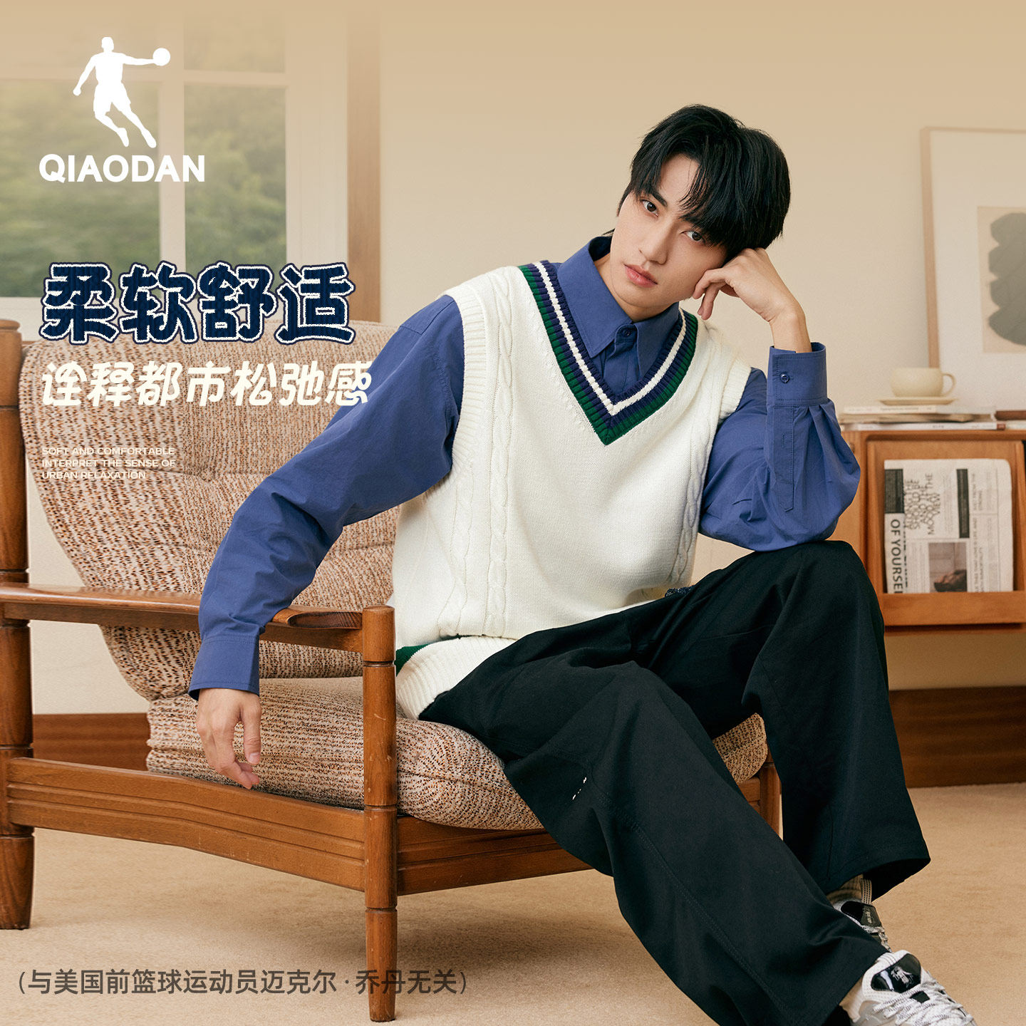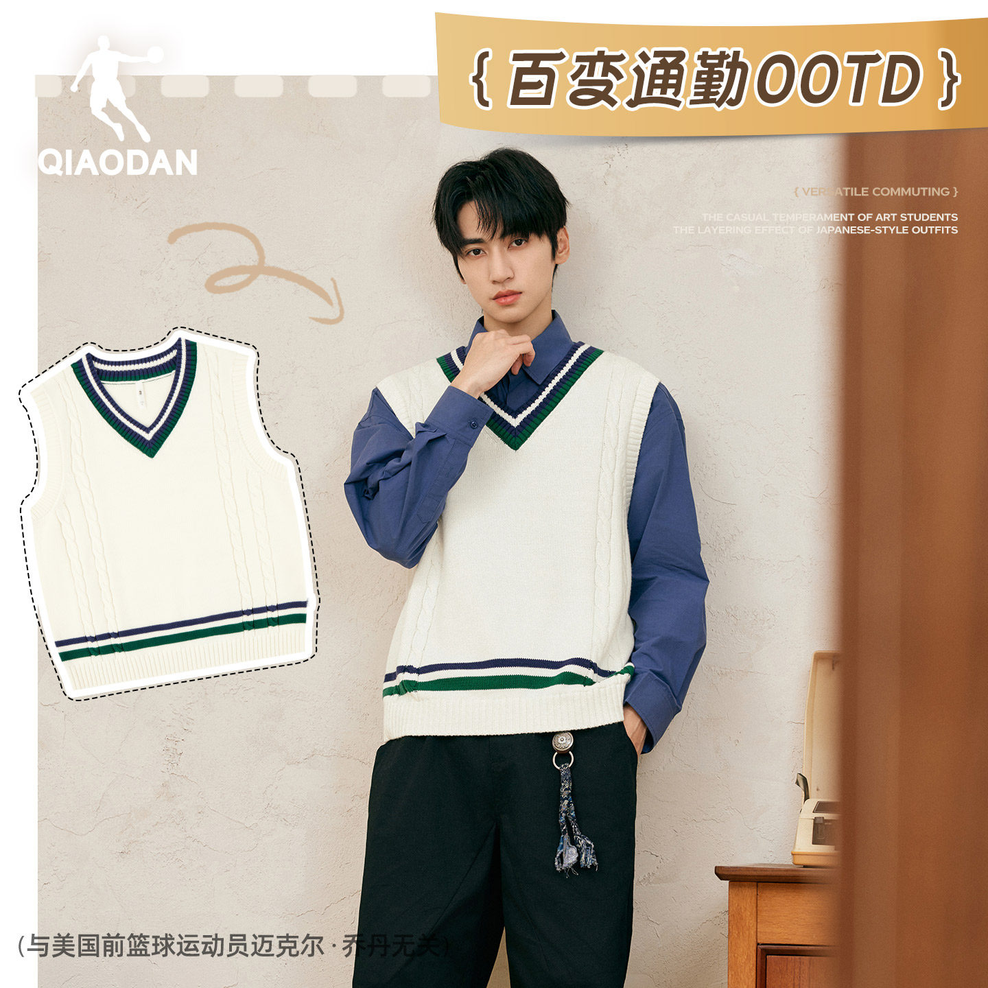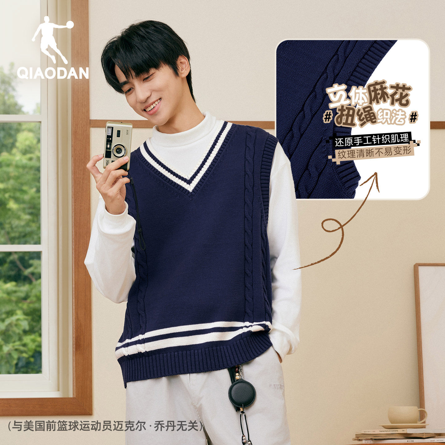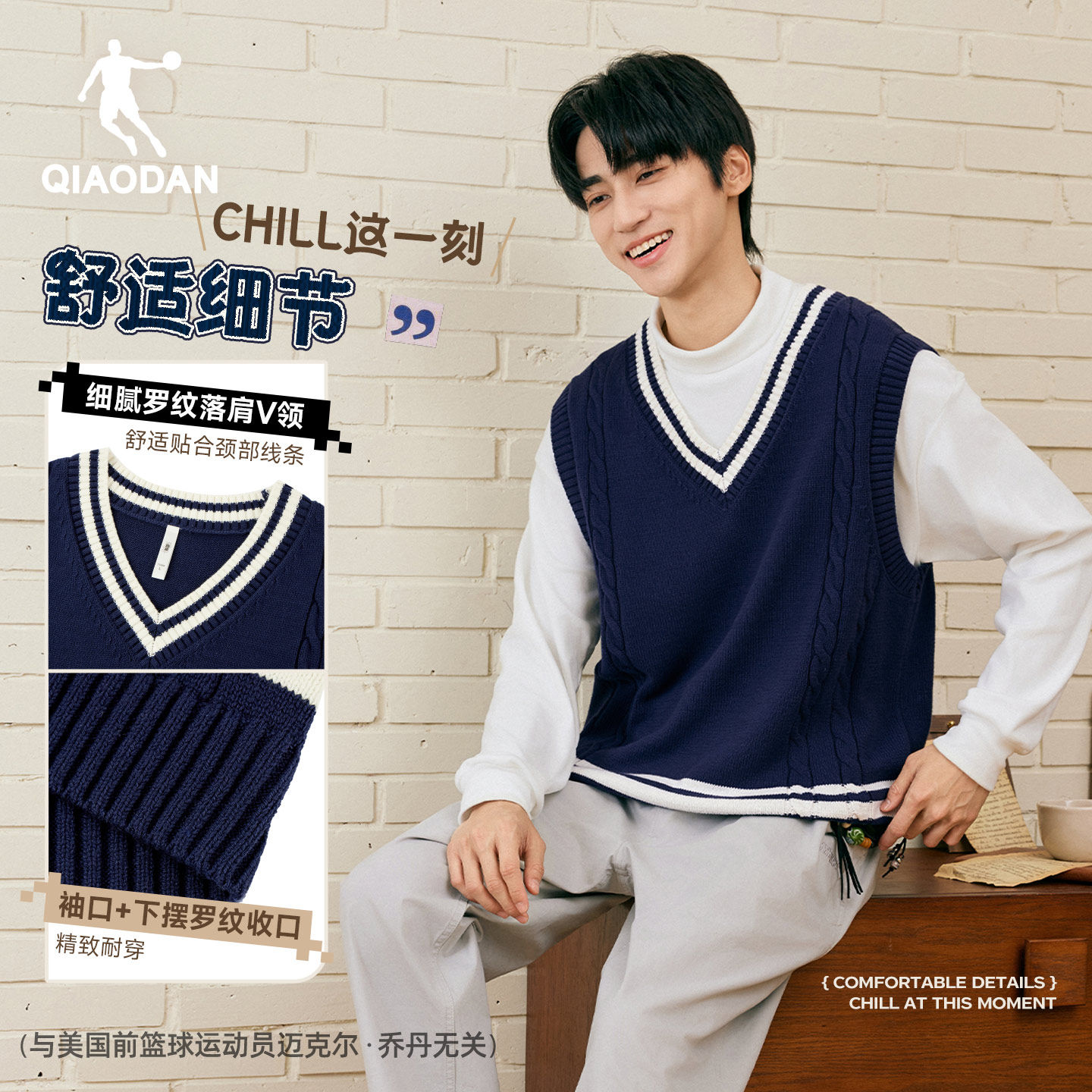乔丹男士针织衫背心2025冬季新款百搭学院风保暖撞色毛衣背心上衣