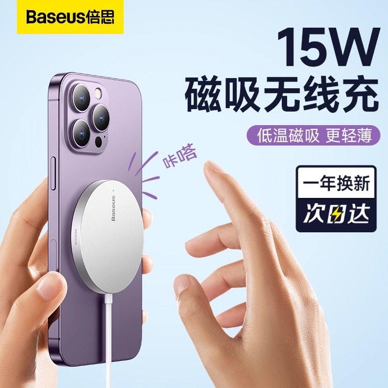 倍思适用于苹果14磁吸magsafe15w桌面14promax手机14Pro手机PD充电头快充插头磁粘贴iphone15pro无线充电器