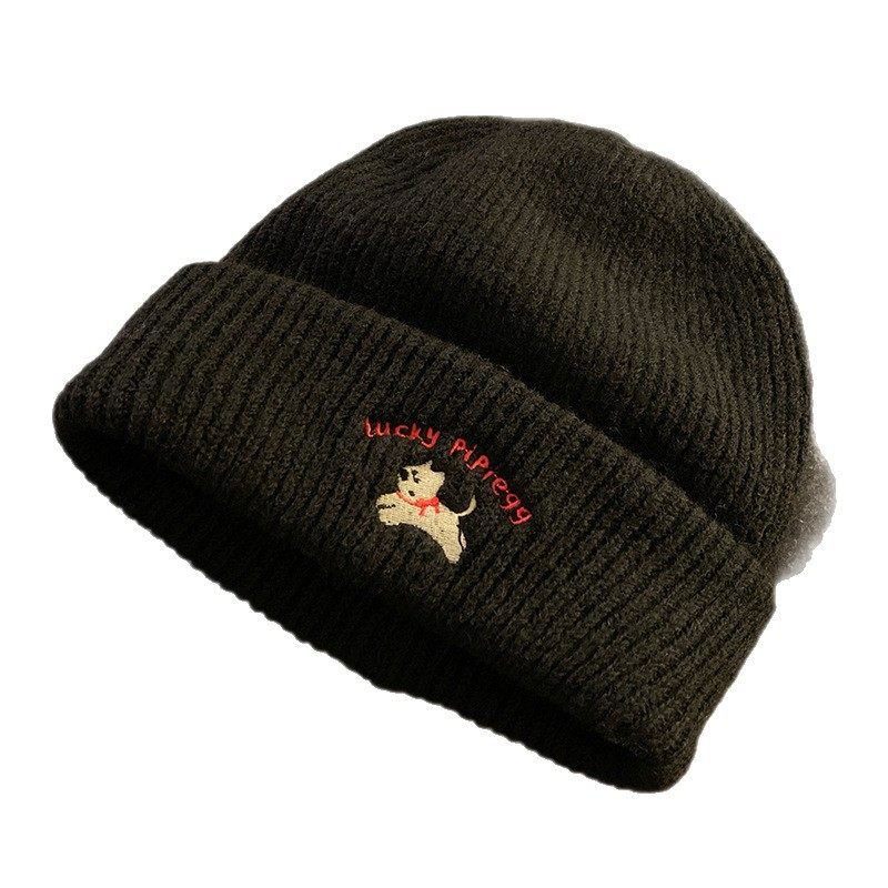 可爱小狗刺绣针织毛线帽女2025年新款秋冬季显脸小百搭大头围帽子