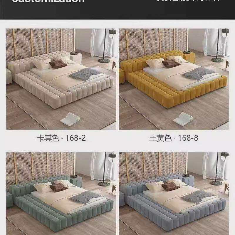 北欧科技布床轻奢风现代简约布艺床双人床主卧榻榻米日式落地矮床