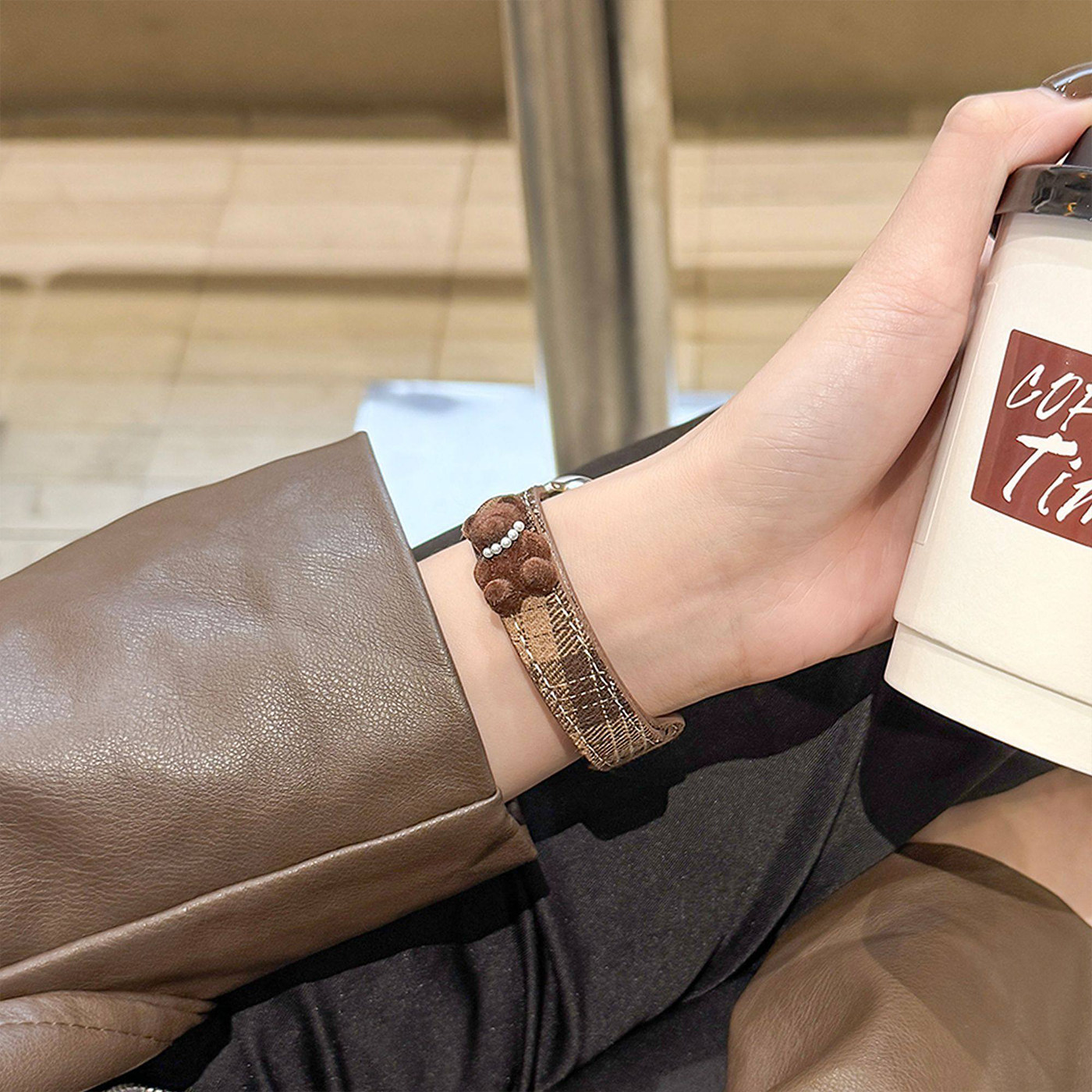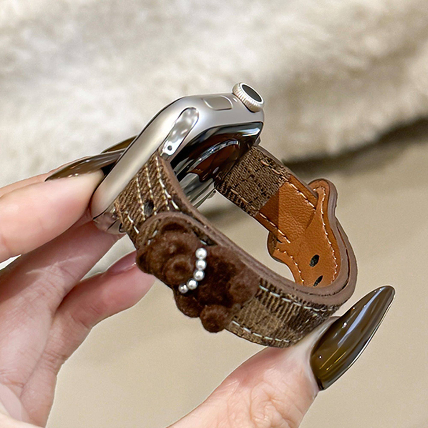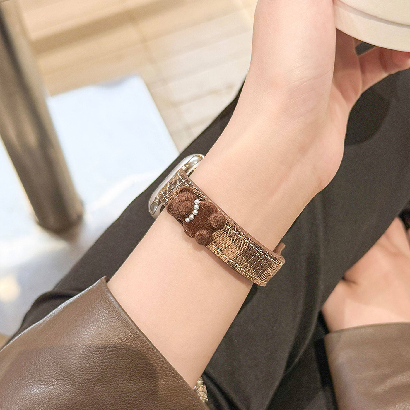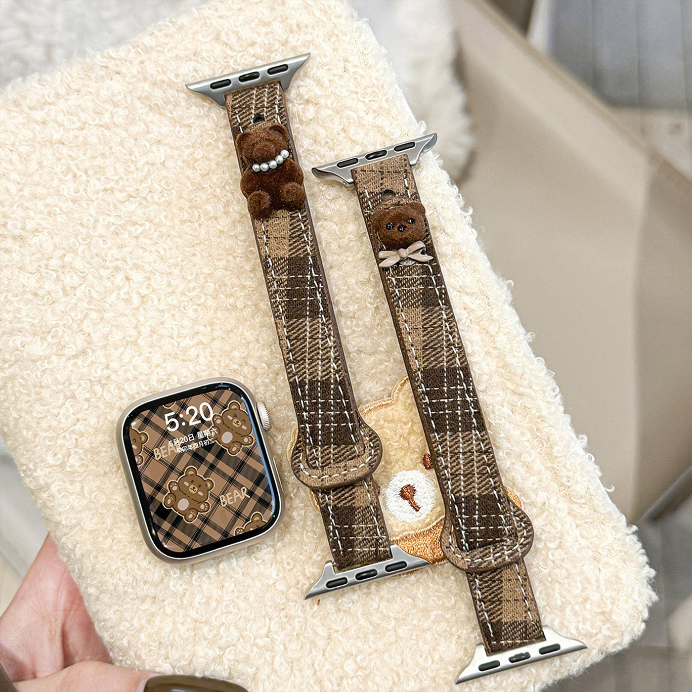 适用ApplewatchS11表带简约ins风苹果手表s10/9/8/7格纹小熊可爱腕带6/5/4创意帆布se智能运动配件ultra