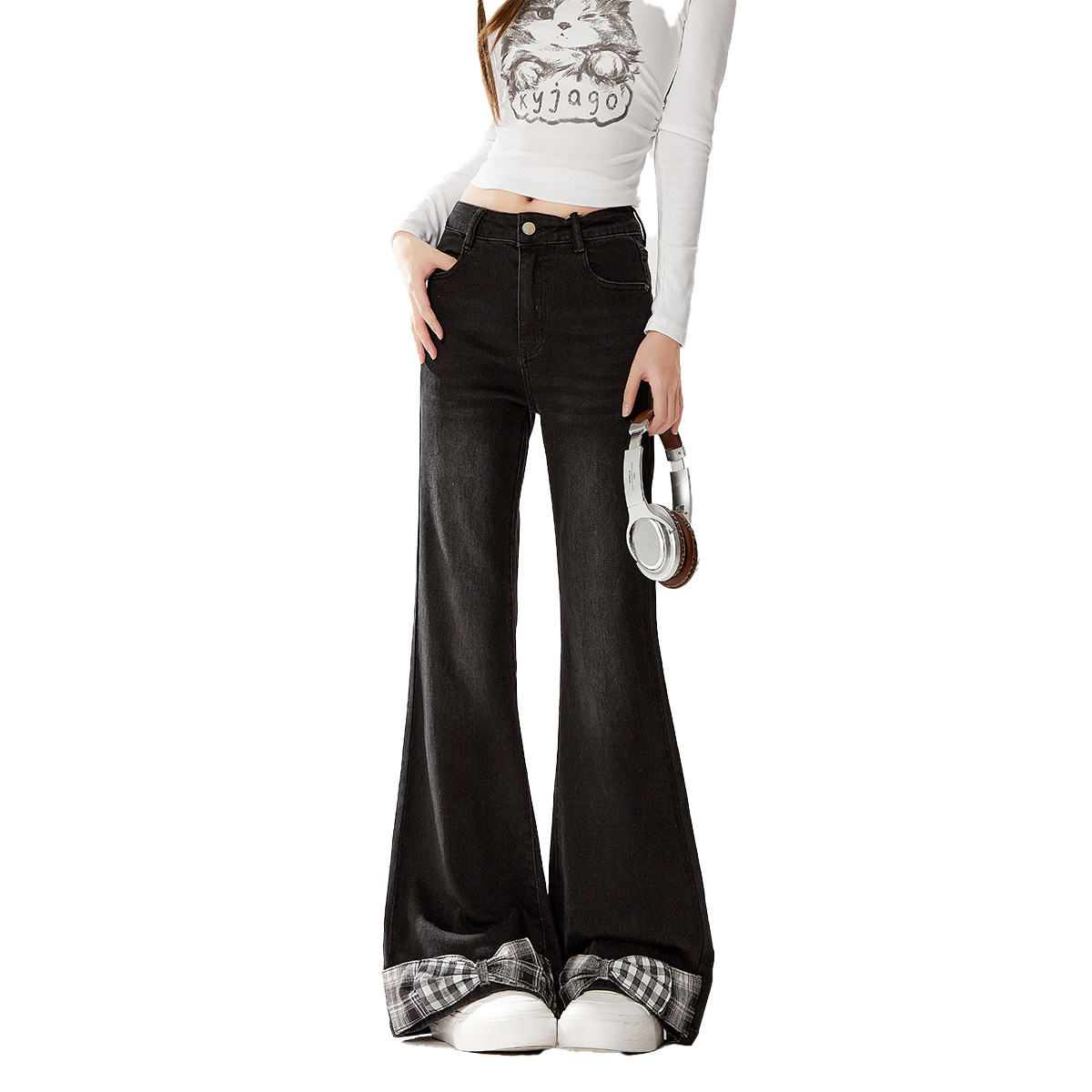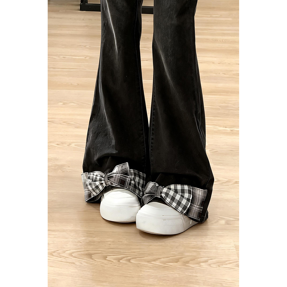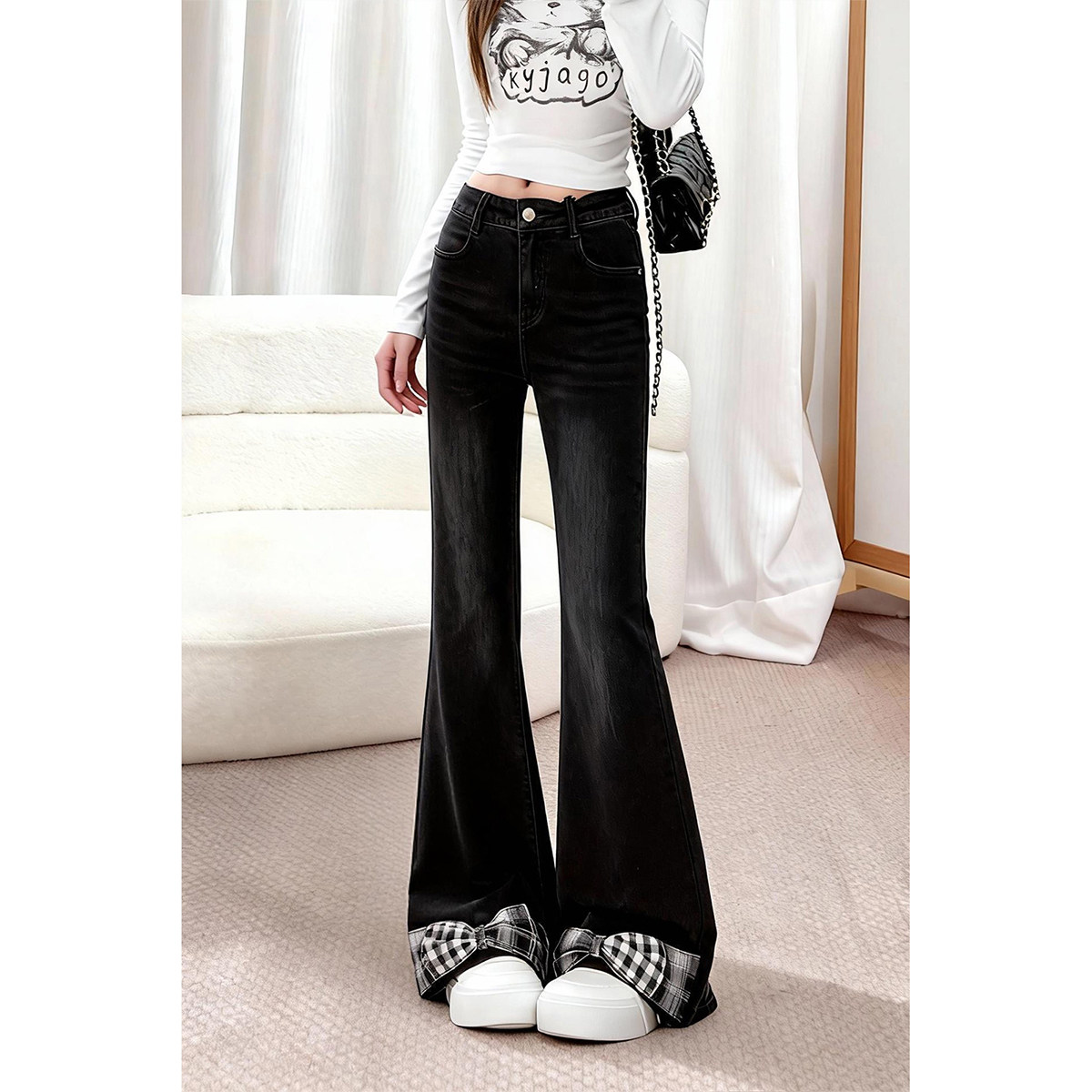 自然涩蝴蝶结微喇牛仔裤女2026早春新款小众显瘦百搭喇叭裤子冬季