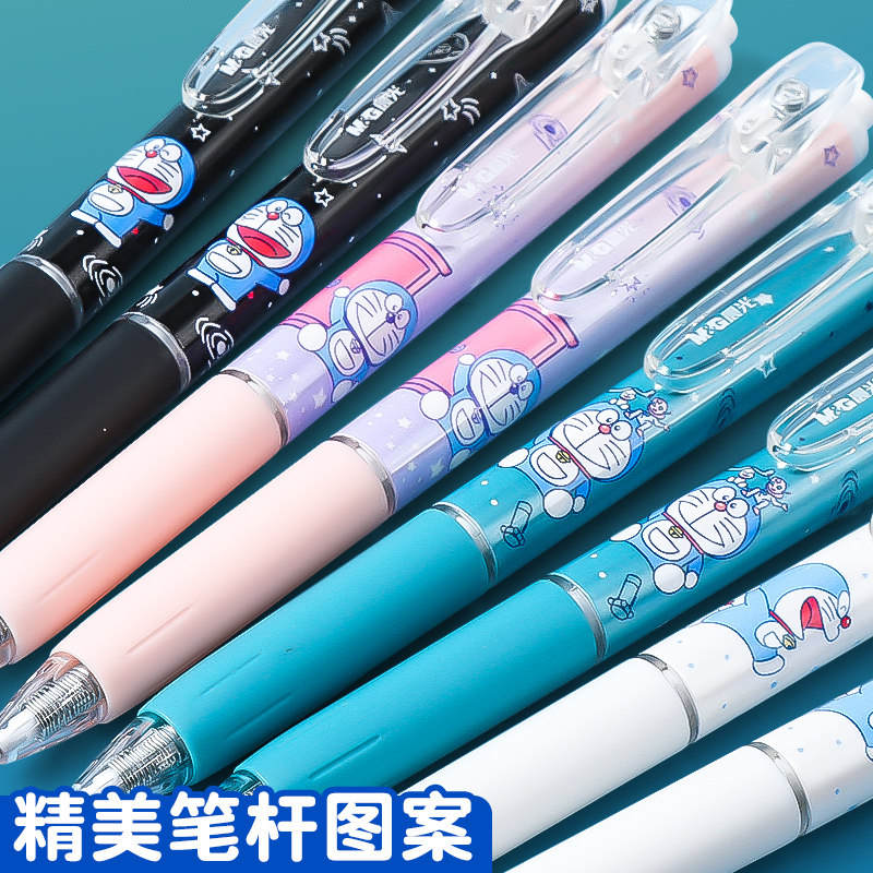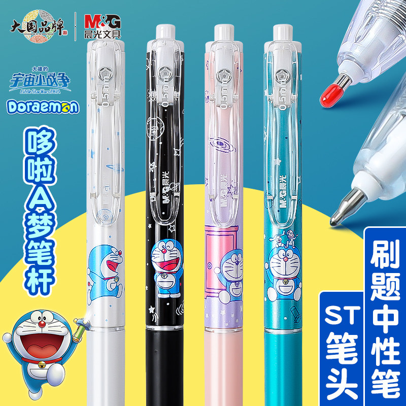 晨光哆啦A梦联名按动中性笔学生用黑色0.5秒干黑笔按压式st笔头水笔笔芯葫芦头签字笔速干顺滑刷题考试专用笔