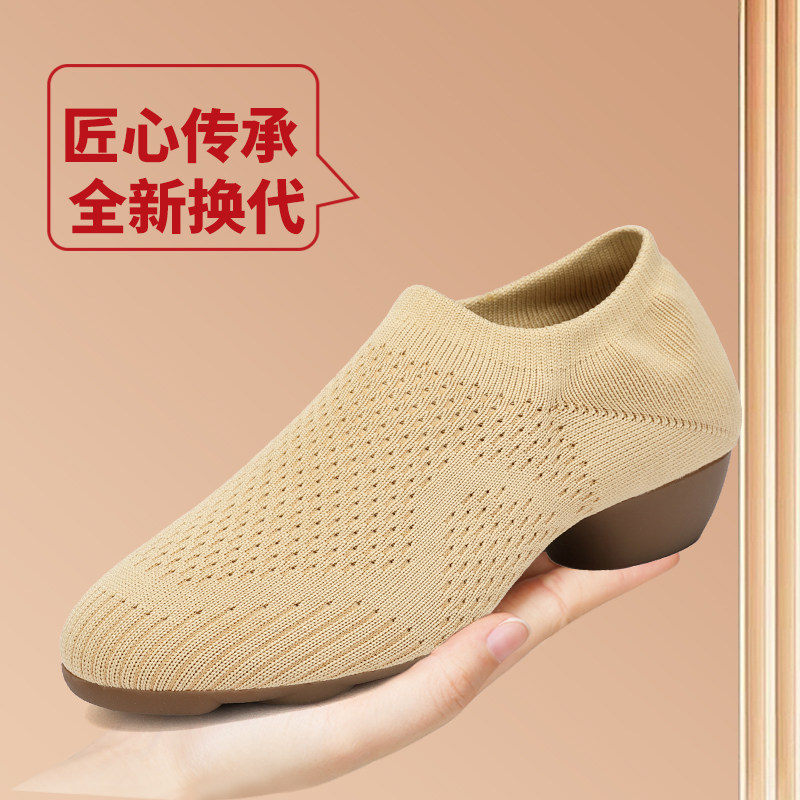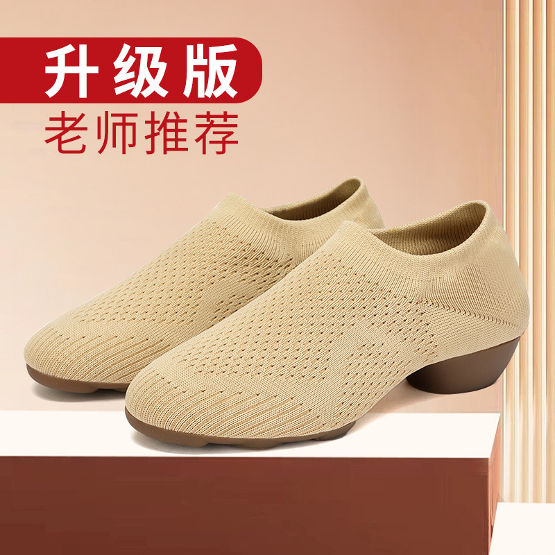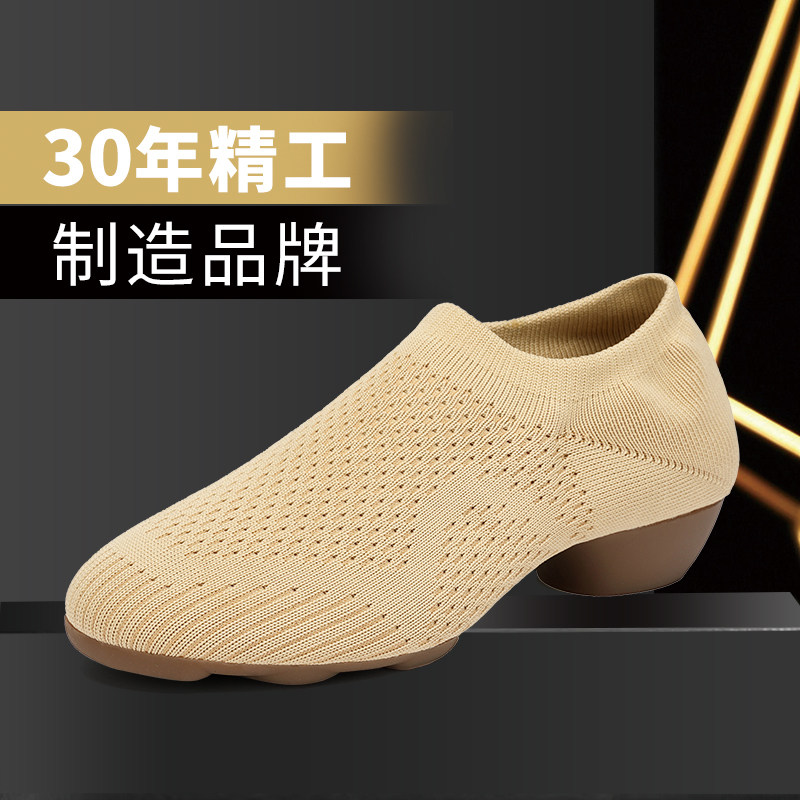 飞织布舞蹈鞋女软底跳舞鞋成人瑜伽鞋芭蕾舞鞋教师鞋带跟广场舞鞋