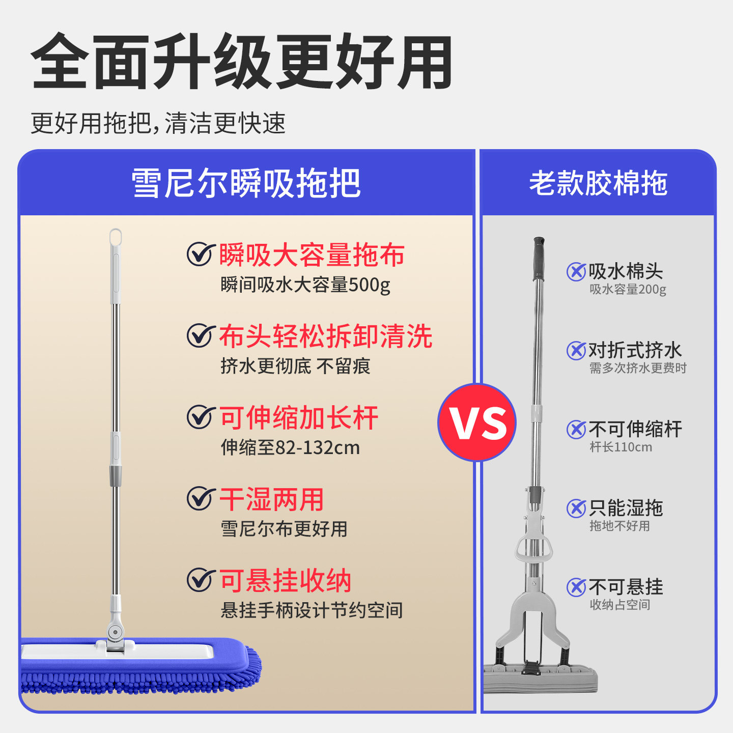 雪尼尔平板拖把家用一拖净干湿两用2025新款吸水大面积拖地板神器