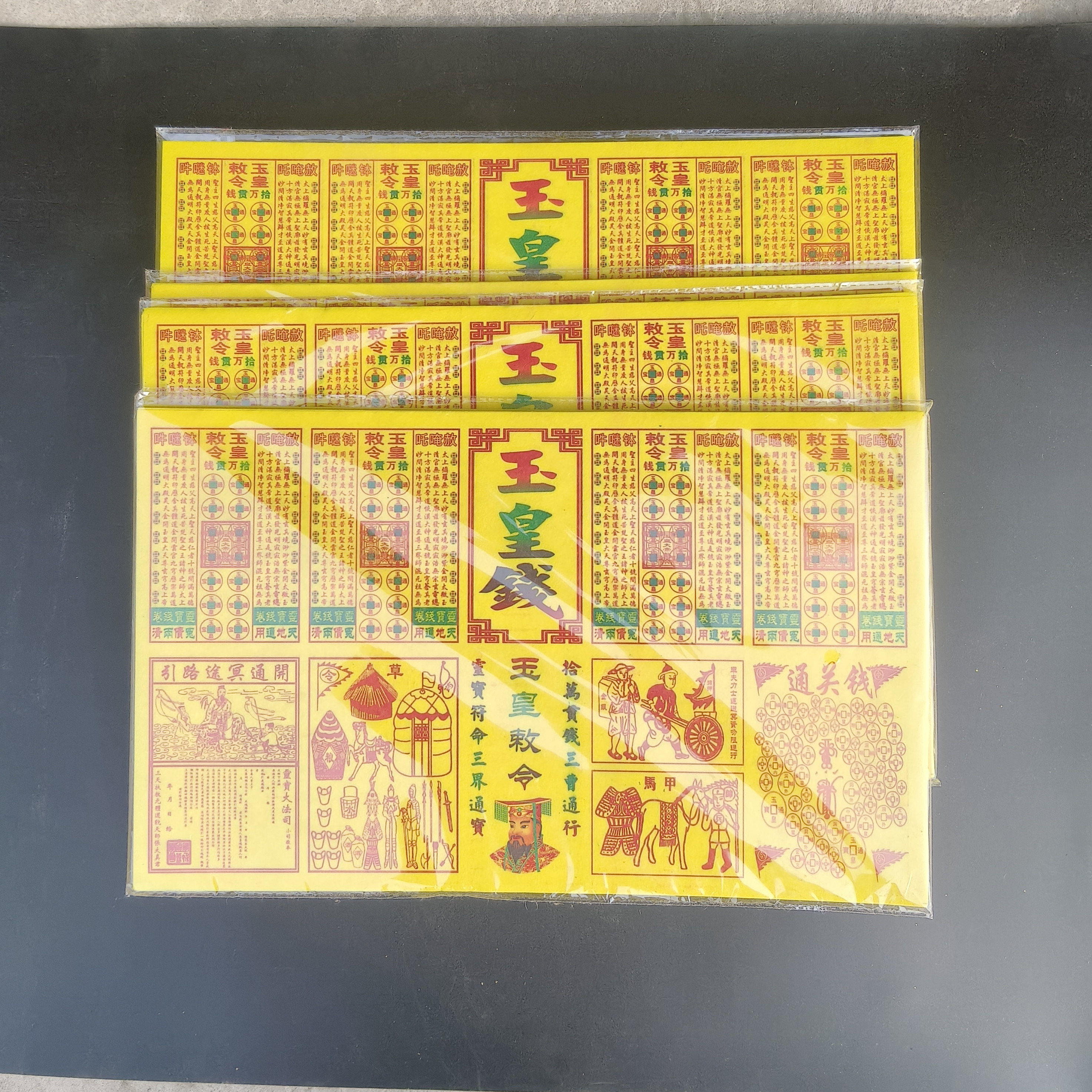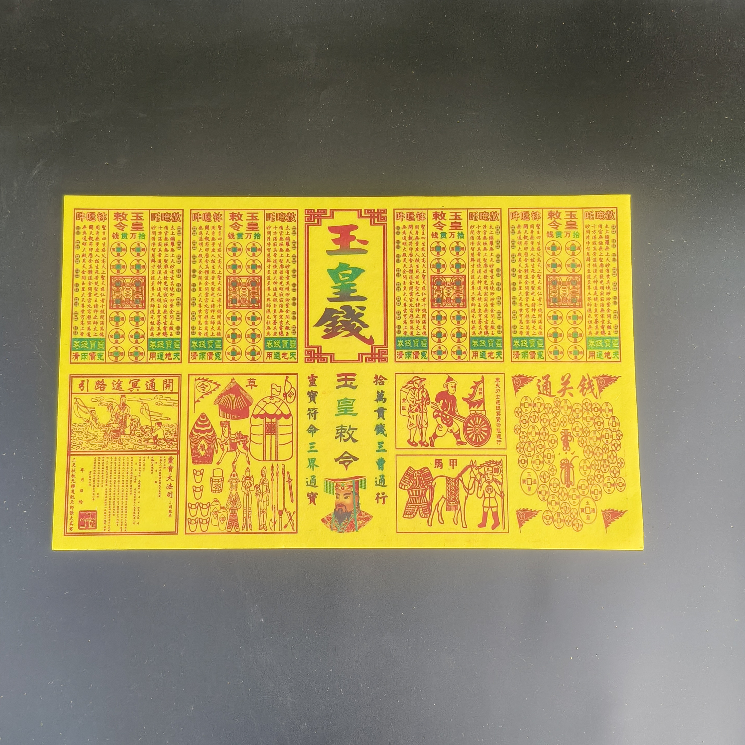 烧后留字玉皇钱玉皇敕令竹浆纸手工纸折纸祭祀用品道家用品烧纸黄纸元宝金条半成品