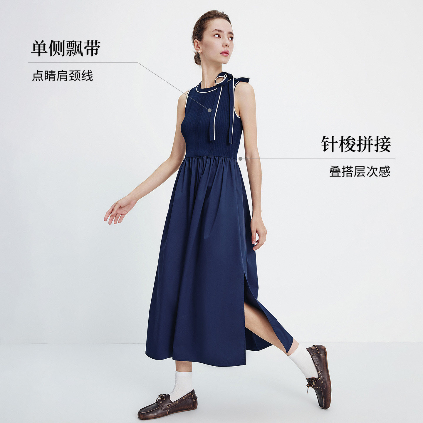 Navigare意大利小帆船蓝色休闲连衣裙女士2026春夏新款中弹裙子