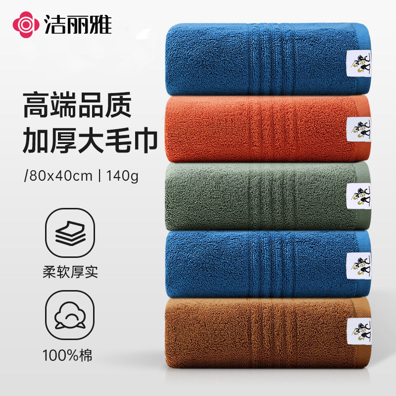 洁丽雅纯棉毛巾5A抑菌加厚吸水成人家用柔软亲肤不易毛不掉絮面巾
