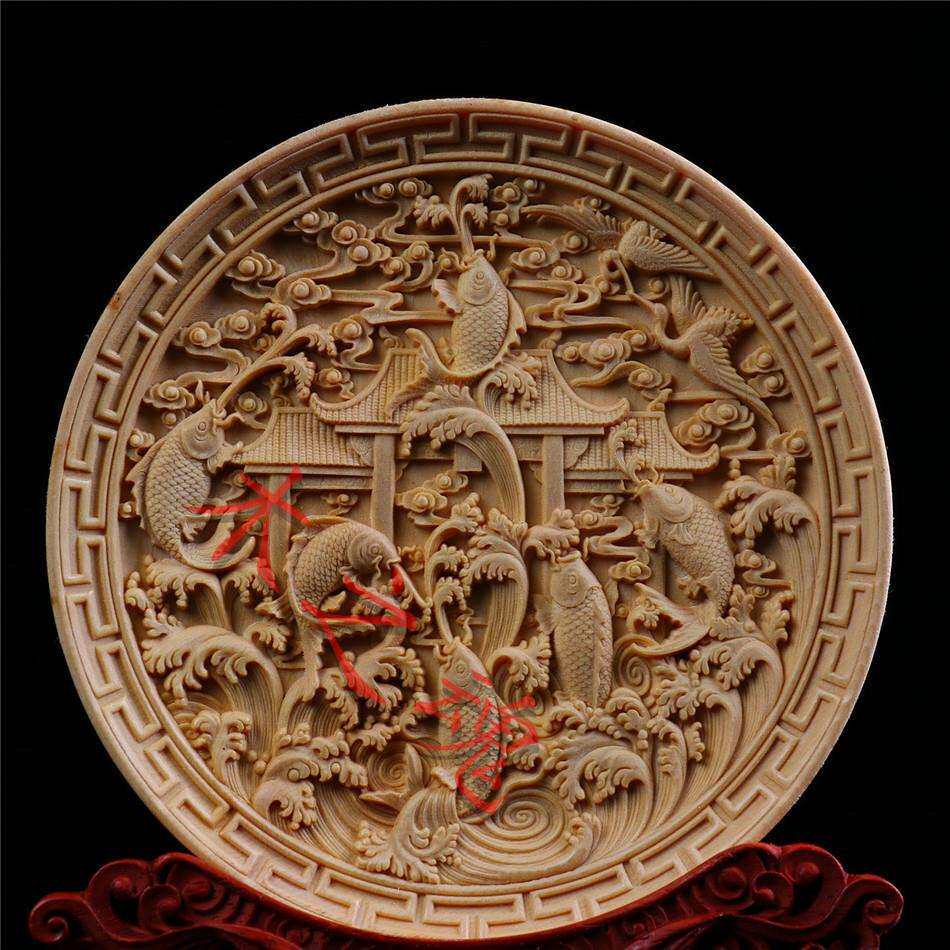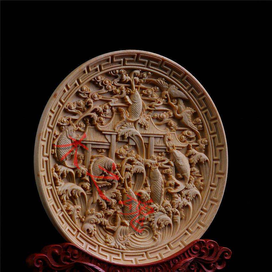 木雕圆盘台屏桧木红花梨底座摆件客厅家居高档装饰工艺品实木