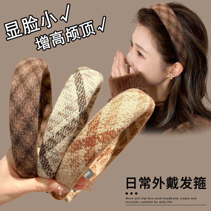 秋冬高级感格纹发箍女2025新款日常外戴高颅顶头箍显脸小减龄发卡