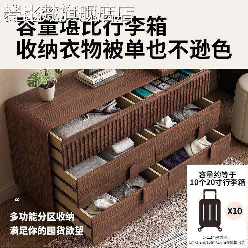 麦比梵实木中古风梳妆台斗柜一体卧室复古2025新款收纳柜一体伸缩化妆桌床笠拉车