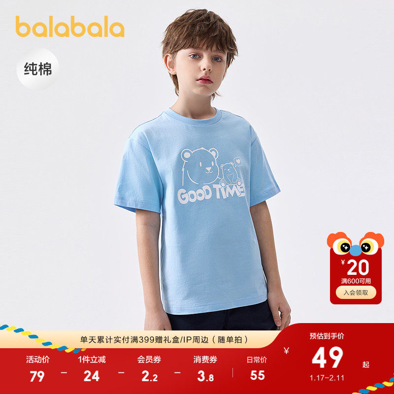 巴拉巴拉儿童短袖T恤男童女童上衣宝宝童装2025款速干夏装亲子款