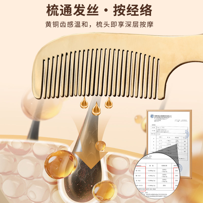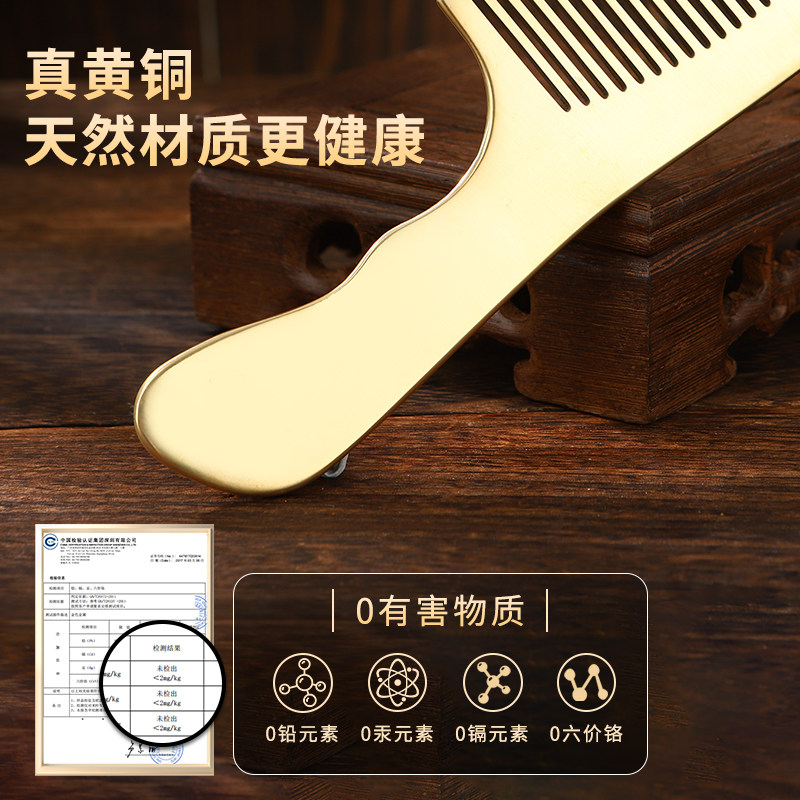 纯黄铜按摩梳头部经络梳子女士家用男士专用头疗经络梳按摩刮痧梳