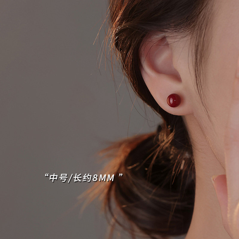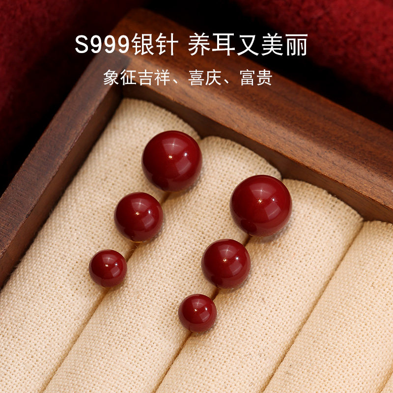 朱砂耳钉官方旗舰店正品银针高级感耳饰轻奢红色耳环新款2026爆款