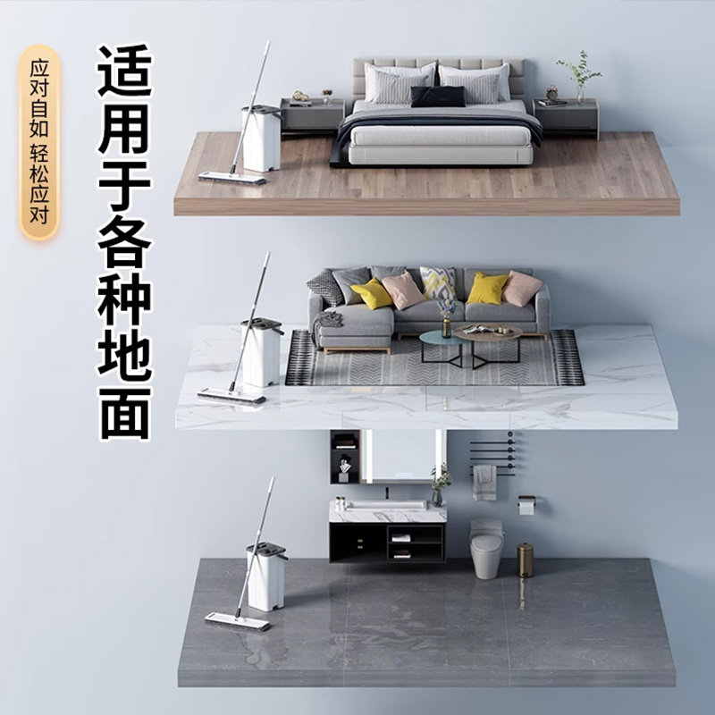 美丽雅免手洗平板拖把干湿两用懒人拖把家用厨房一拖布净拖地神器