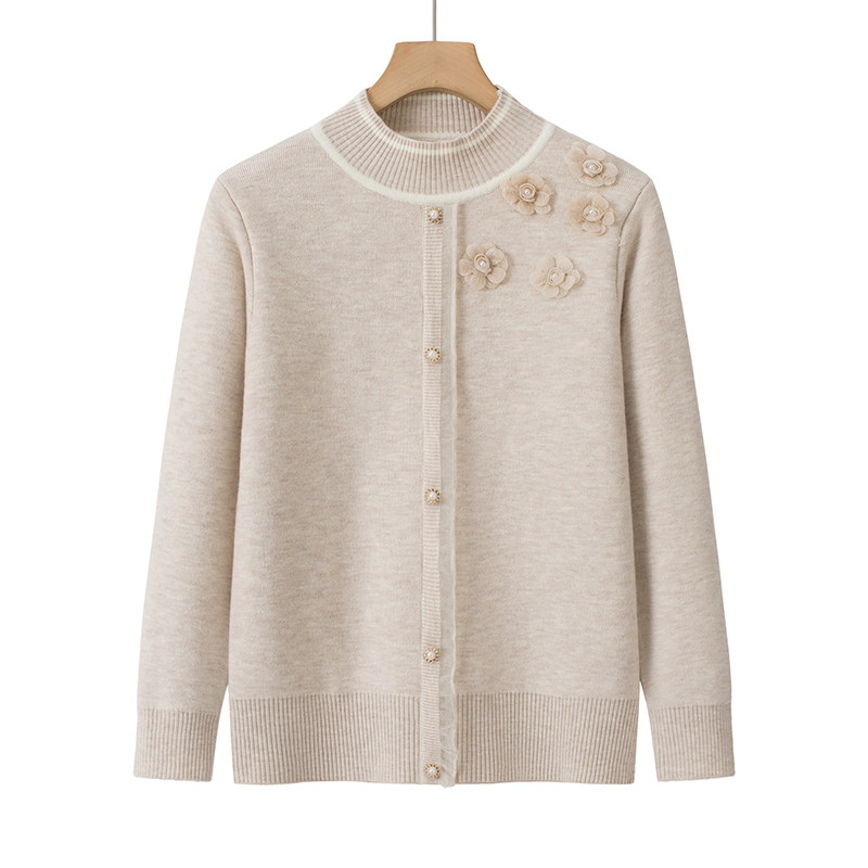 2025新款立体蝴蝶加绒加厚毛衣中老年针织打底衫妈妈秋冬保暖套装