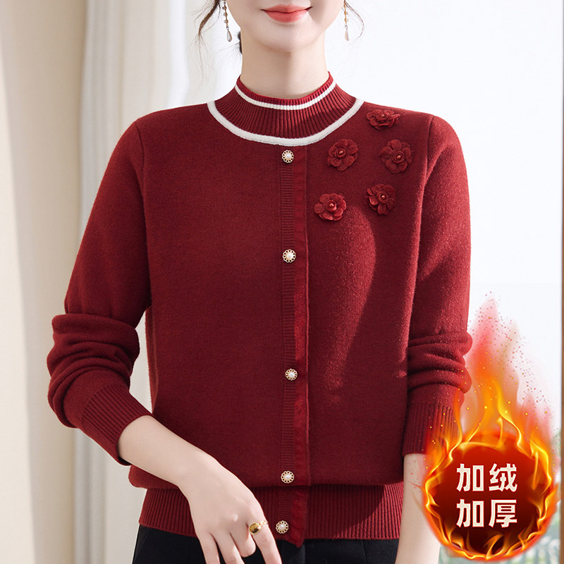 【蜜蜂欢乐社】妍影妈妈冬装加绒毛衣烫钻针织衫