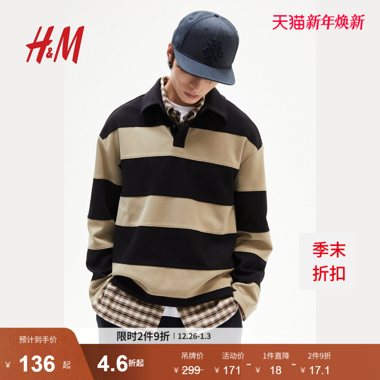 HM男装Polo衫2025冬季新款美式按扣式宽松版型长袖上衣1281081