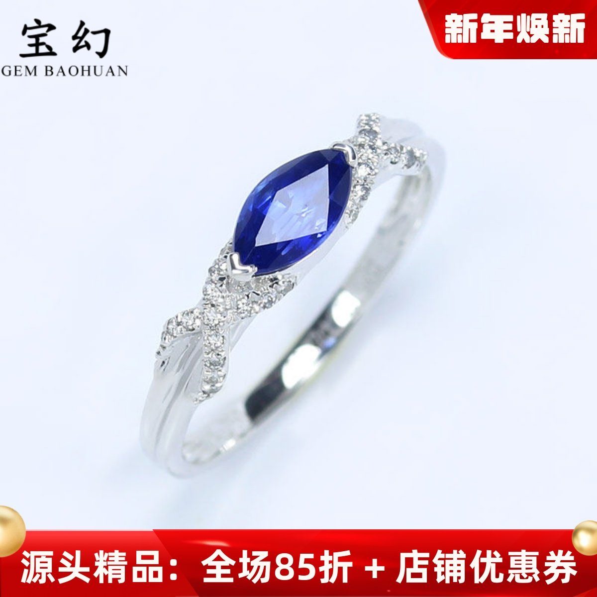 18K白金马眼形天然皇家蓝宝石戒指 正蓝色镶钻石手饰精工指环女款