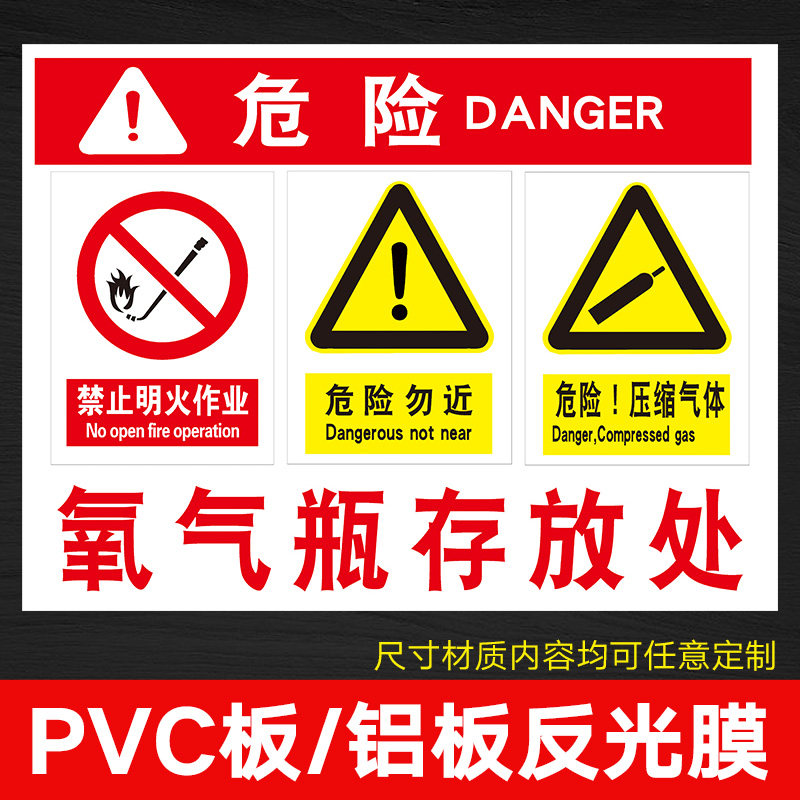 气瓶存放处警示牌 提示牌 标识牌 牌子 贴纸 氧气 液化气存放处 严禁烟火 禁止吸烟 危险 请勿靠近提醒提示