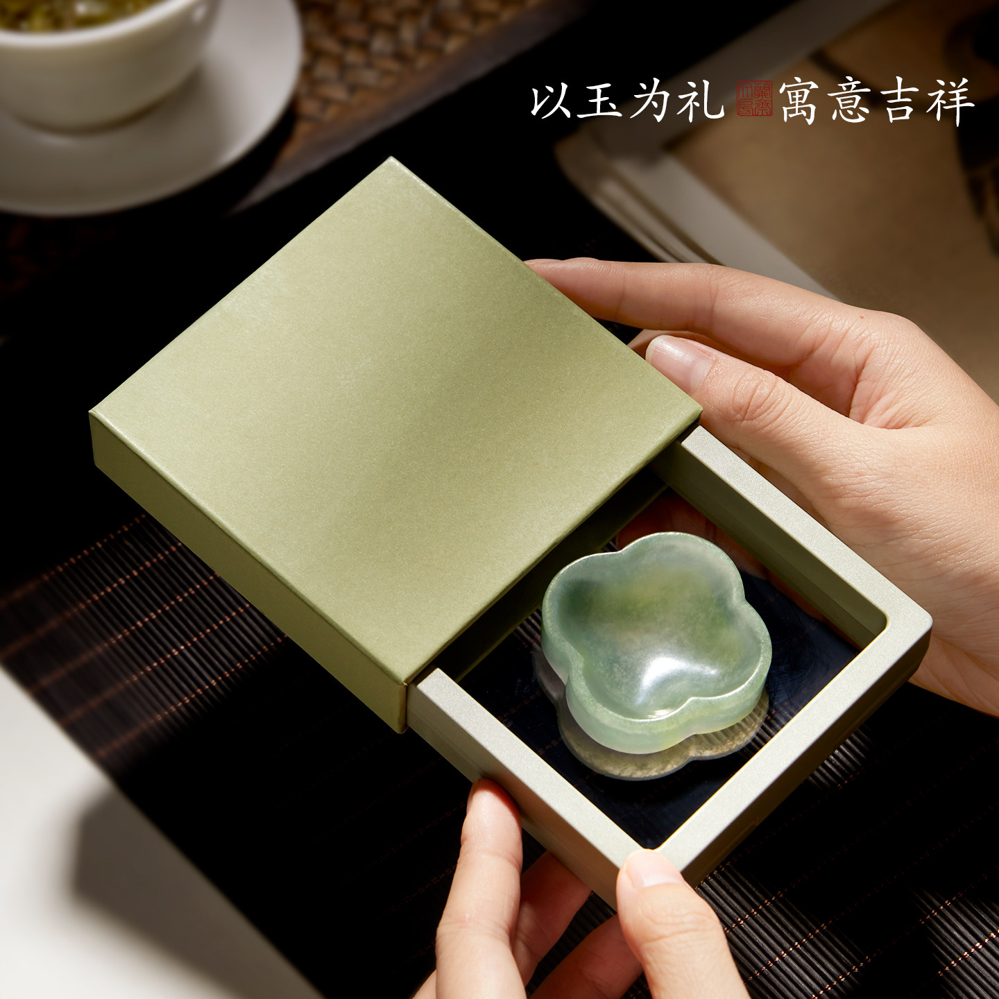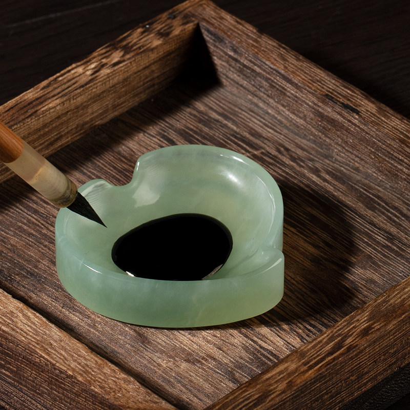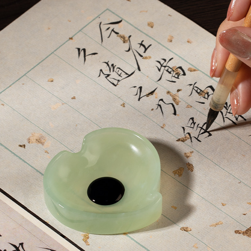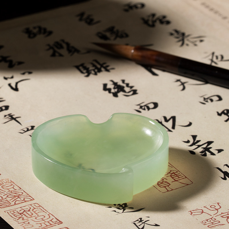 兰斋海棠岫玉墨碟手工打磨笔掭镇纸天然玉石创意文创书法国画笔搁初学毛笔练习文房四宝墨池墨碟精致礼物