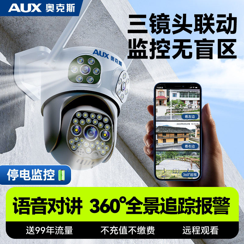 奥克斯摄像头监控器360度无死角室外高清夜视家用手机远程防水4G