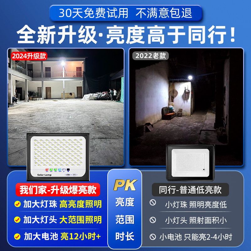 太阳能户外灯家用庭院灯2025新款超亮大功率强光款感应照明灯路灯