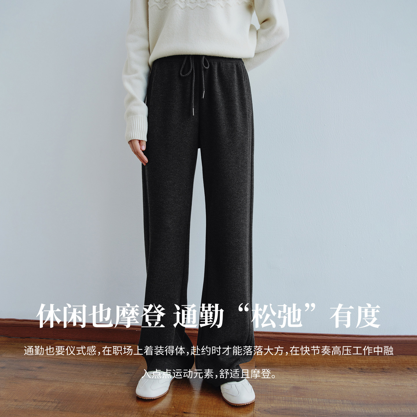 Navigare意大利小帆船松紧腰休闲裤女2025秋冬新款加厚羊毛直筒裤