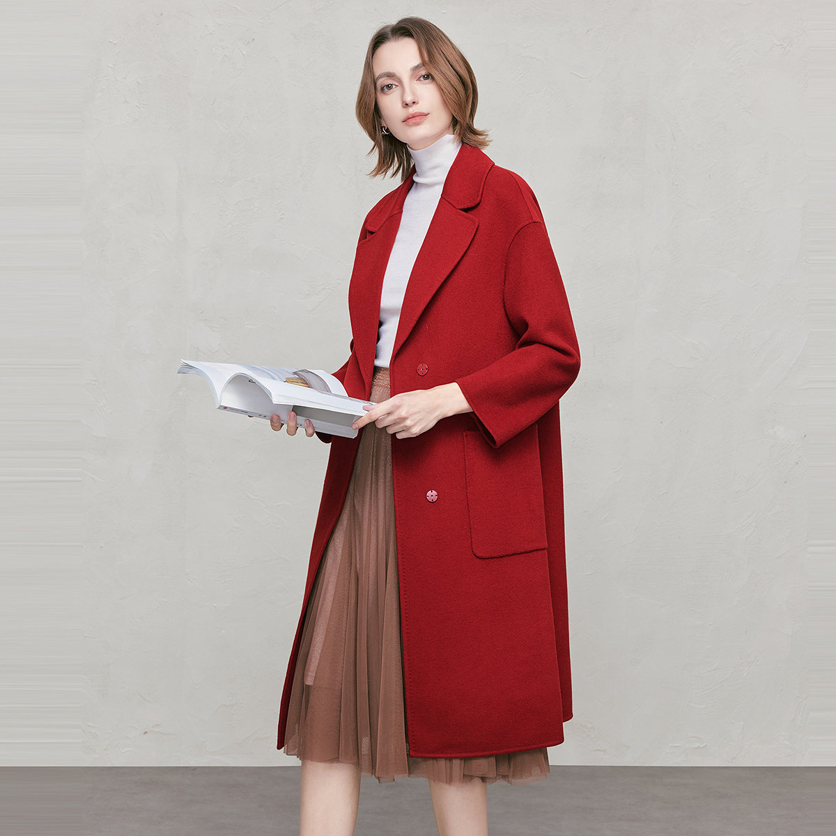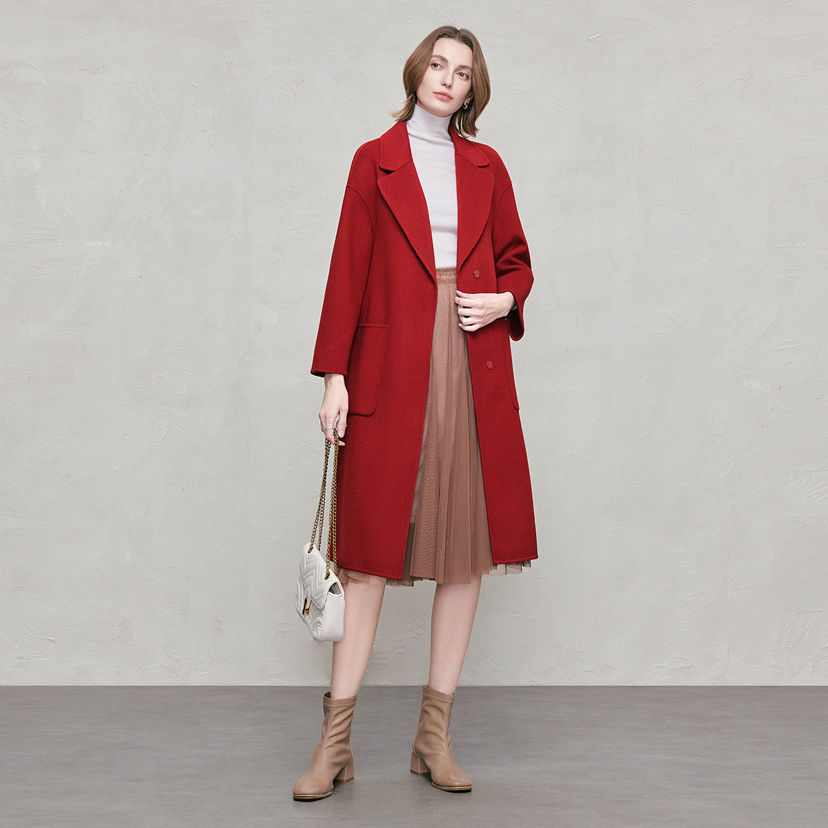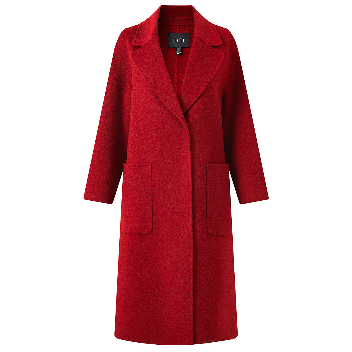 FINITY菲妮迪毛呢外套2026年春季新款红色双面呢长款羊绒大衣女士