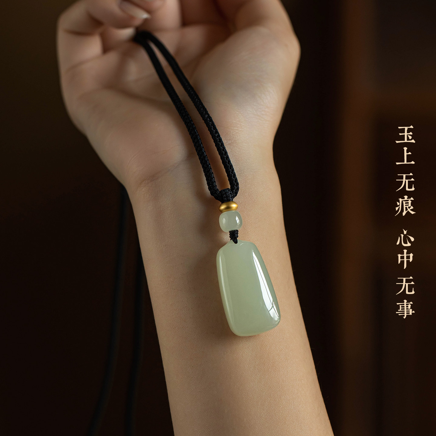 【店长设计】新款和田玉无事牌吊坠玉石项链好运挂坠精致收藏级礼
