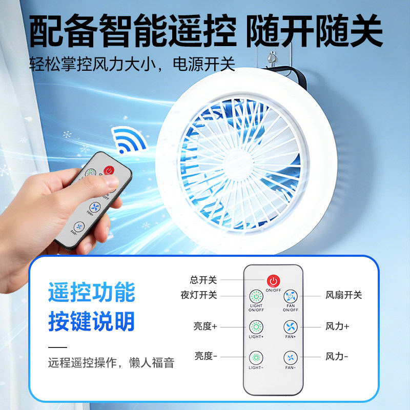 风扇宿舍小型床上静音学生下铺悬挂吊扇大风力超长续航寝室桌面床头usb充插两用可遥控摇头定时蚊帐床帘带灯
