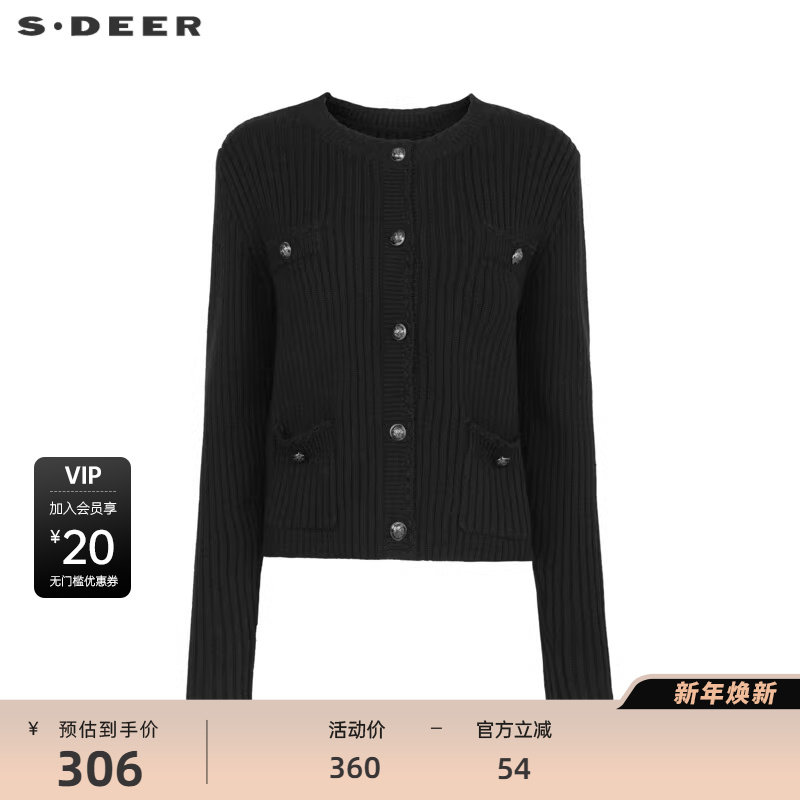 sdeer圣迪奥女装小香风慵懒圆领开衫针织衫S23483522