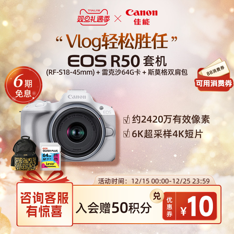 [旗舰店]Canon/佳能 EOS R50 机身/套机 微单入门女生新手相机