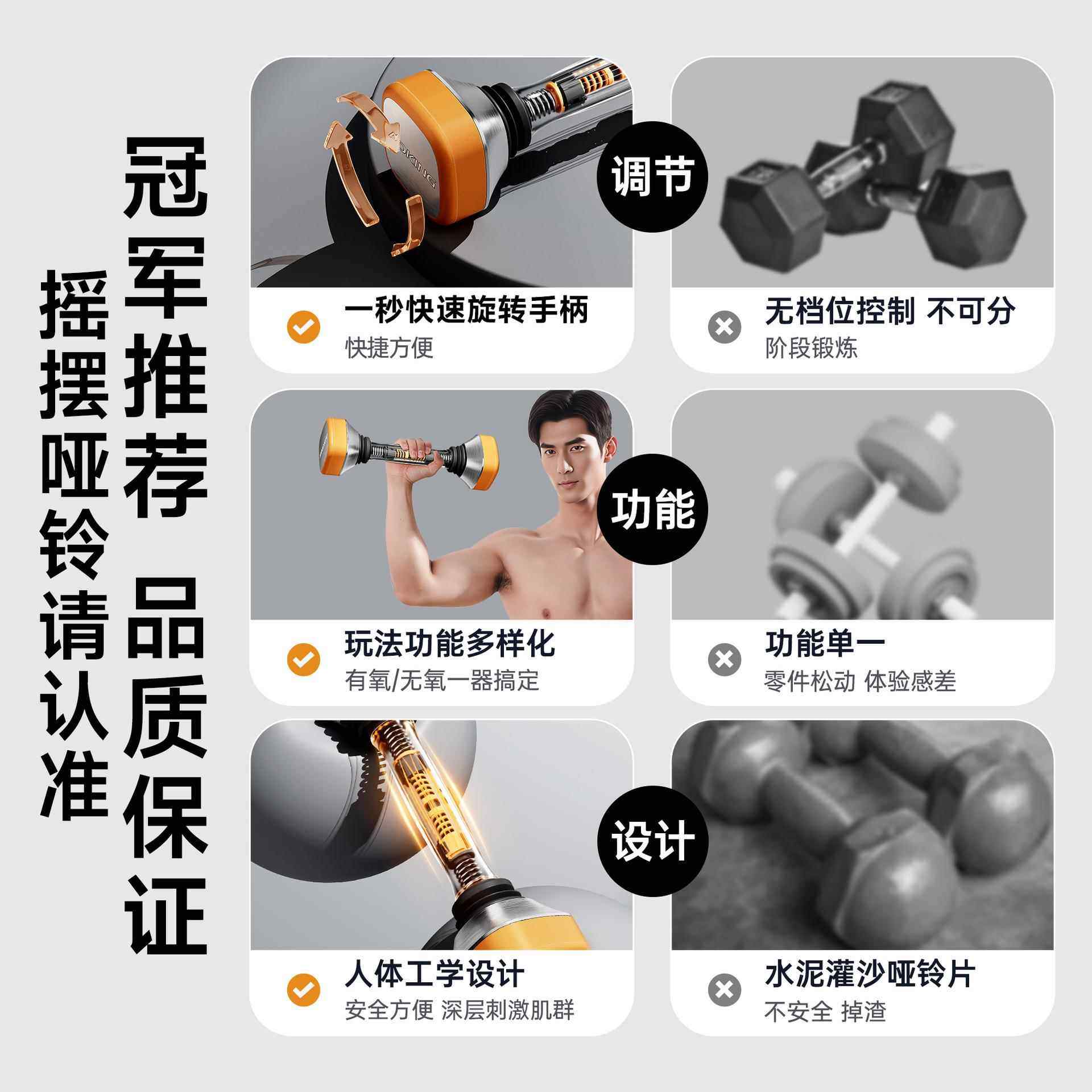 摇摆震动哑铃多功能男士健身家用女士可调节重量手臂力量训练器材