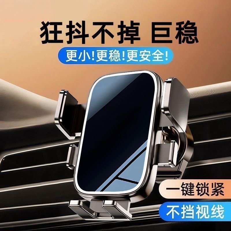 车载手机支架可横屏一键锁紧倒挂钩汽车出风口通用导航支架防抖
