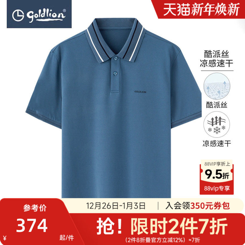 【吸湿排汗】金利来2025新款男短袖T恤男酷派丝翻领商务休闲POLO