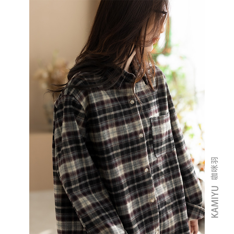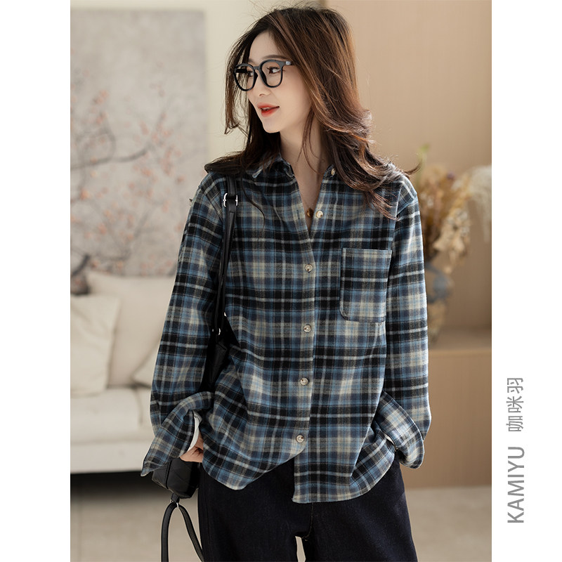 咖咪羽格子衬衫女秋冬新款文艺休闲流行好看通勤百搭女装上衣开衫