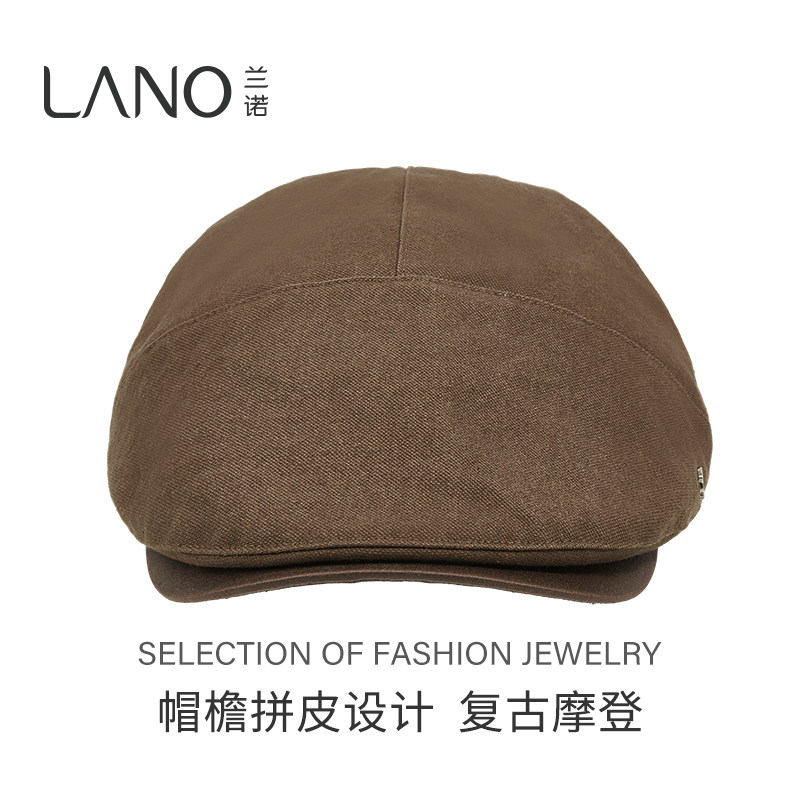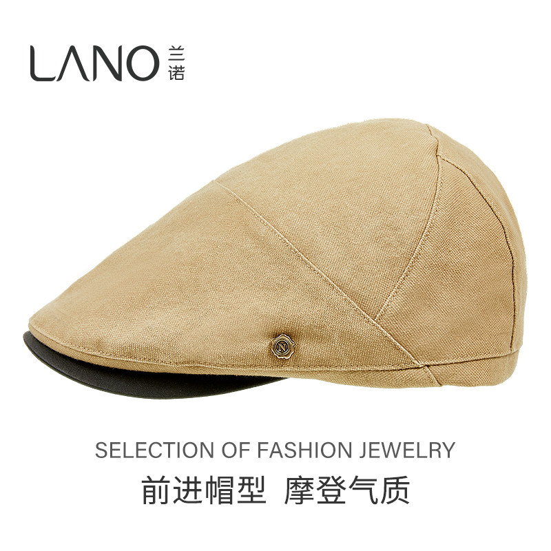 兰诺纯棉前进帽女2025秋新款显脸小画家帽鸭舌帽帽子复古咖色平顶
