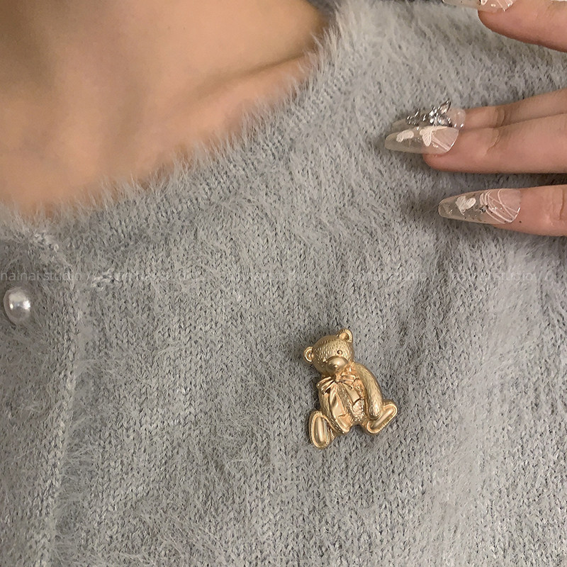 哑光小熊胸针~磨砂金属甜美可爱别针学院风西装外套包包小众配饰