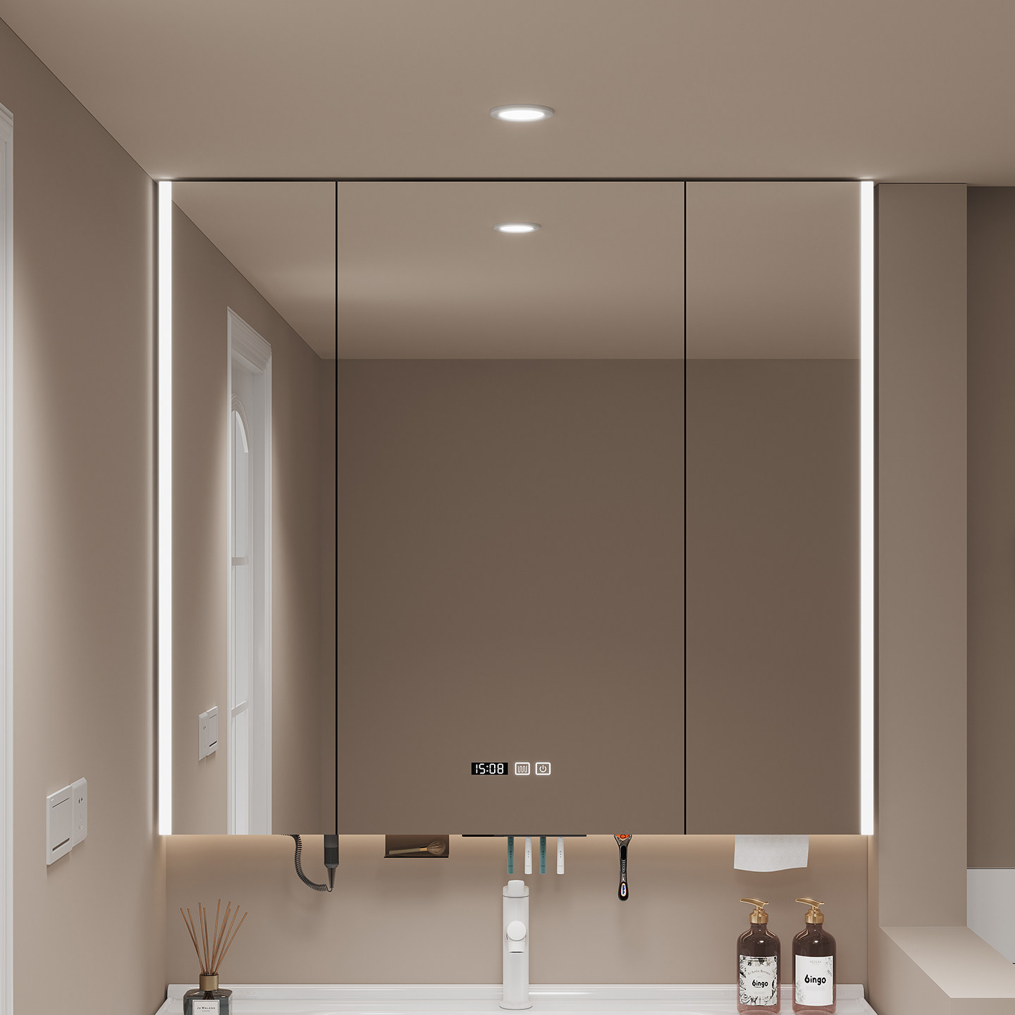 定制浴室通顶镜柜单独智能镜箱卫生间镜子收纳一体挂墙式带置物架