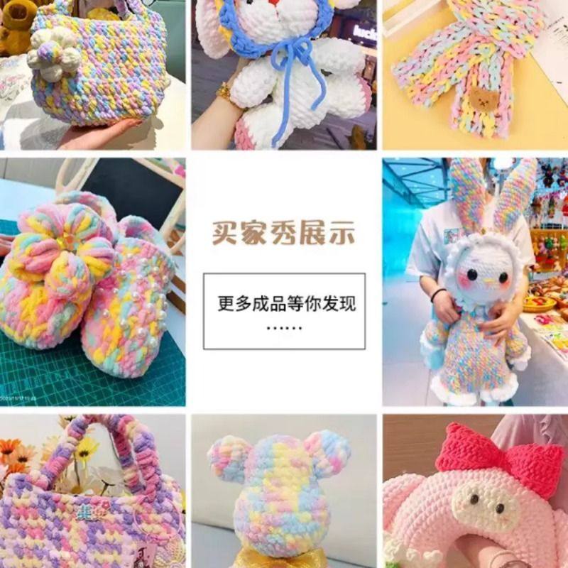 冰条线粗毛线手工织围巾勾拖鞋专用手织彩色打毛线团编织diy手指