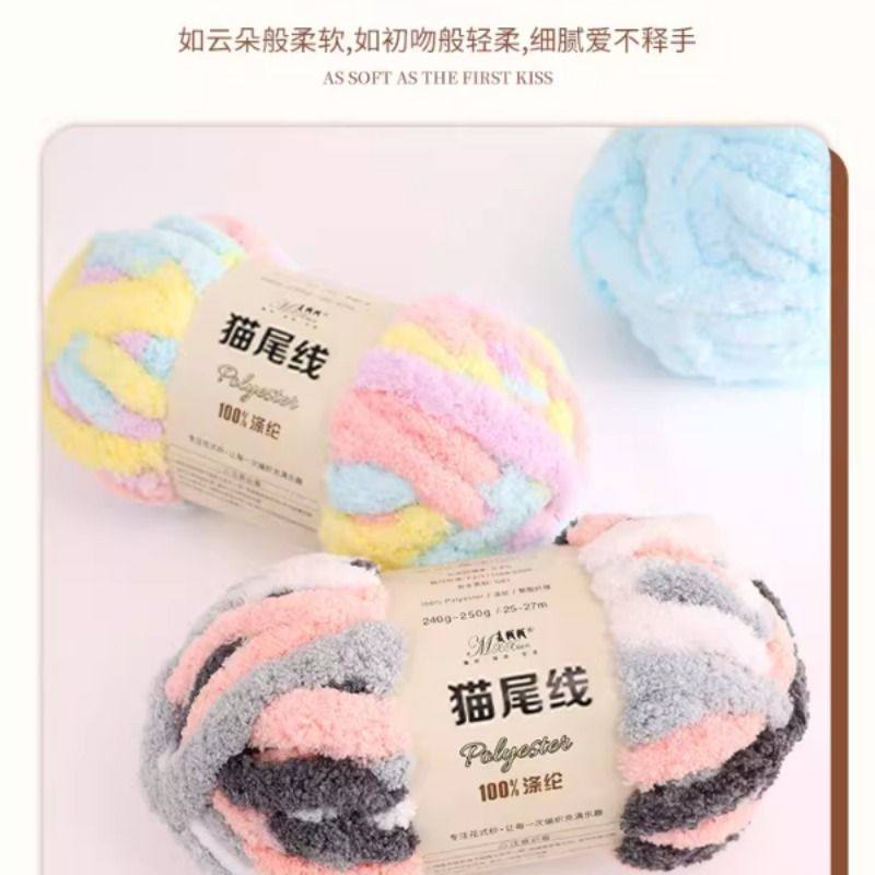 猫尾巴线粗毛线超粗手指围巾手织猫窝diy特粗2cm毛线手工编织坐垫