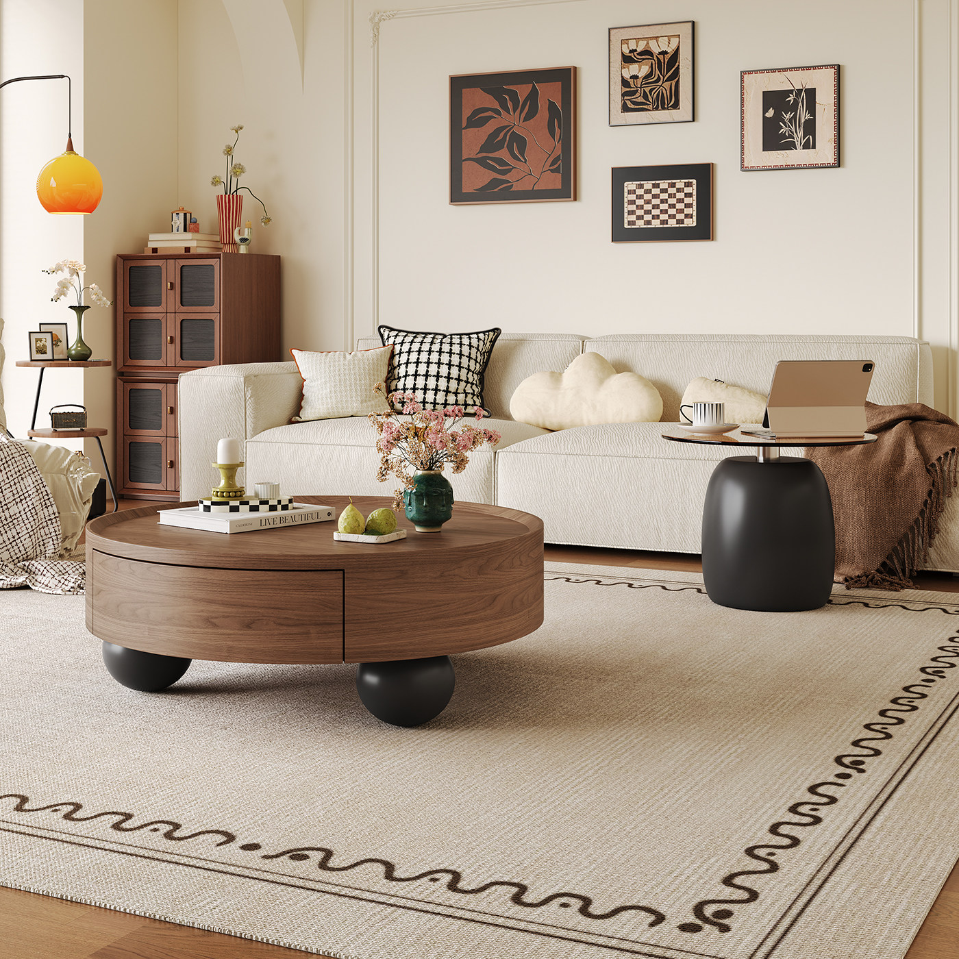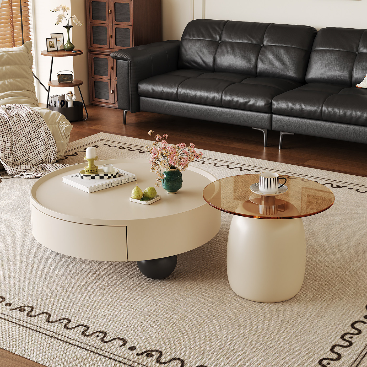 2026新款茶几组合中古风家用小户型客厅轻奢现代高级感大小圆茶几