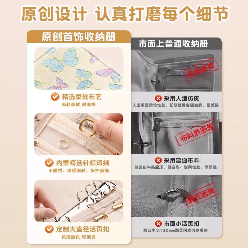 2026新款首饰收纳册黄金收纳包袋存金防氧化高档饰品盒珠宝便携旅行戒指项链耳环手链密封活页书保存带拉链