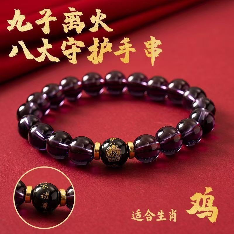 人造紫水晶九紫离火转运珠男女款手串十二生肖守护神本命佛手链