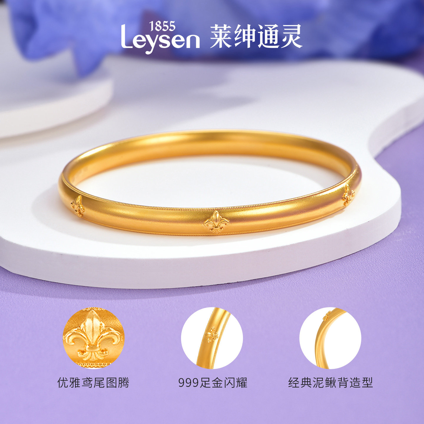 【计价金】莱绅通灵传世金 鸢尾系列 鸢尾花浮雕足金999手镯