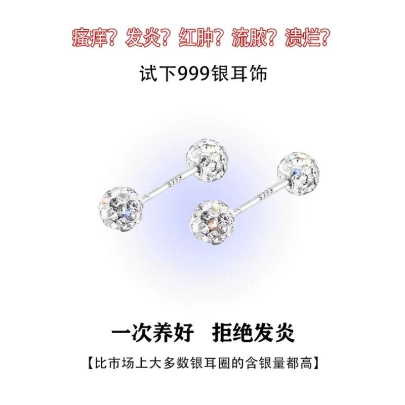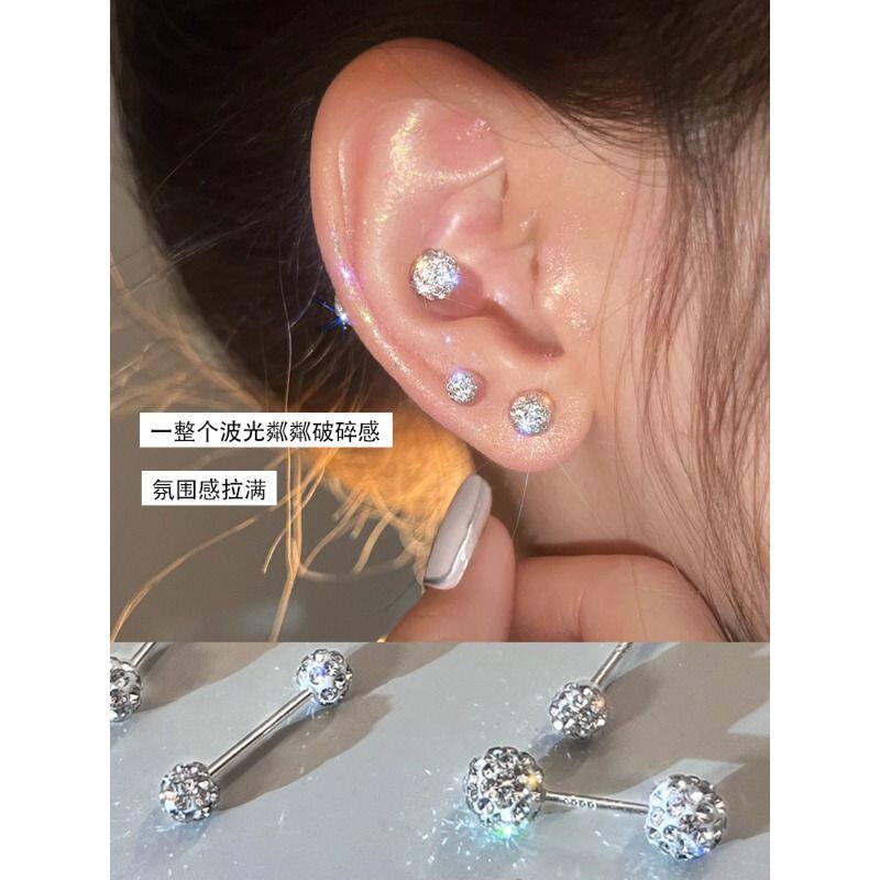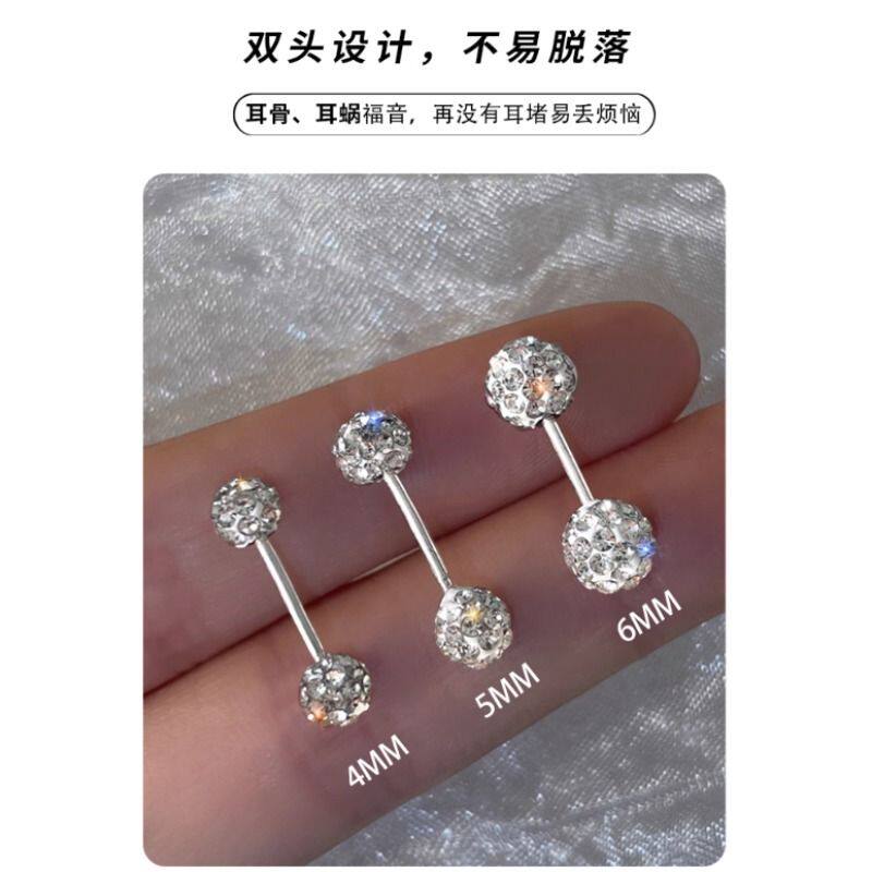 999纯银耳钉女养耳洞耳骨钉小众高级感锆石耳蜗钉水钻耳环银耳饰